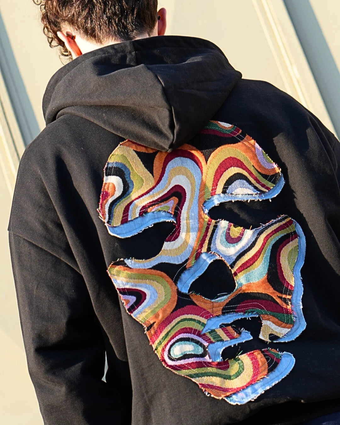 Felpa esclusiva oversize che unisce arte e moda, garantendo comfort eccezionale. Sul retro, un ricamo di due facce astratte crea un suggestivo effetto di sdoppiamento, mentre sul fronte il nome del brand richiama il tessuto utilizzato sul retro. Realizzata in materiale morbido e traspirante, con ricami precisi, è ideale per chi desidera uno stile audace e innovativo senza rinunciare al comfort.