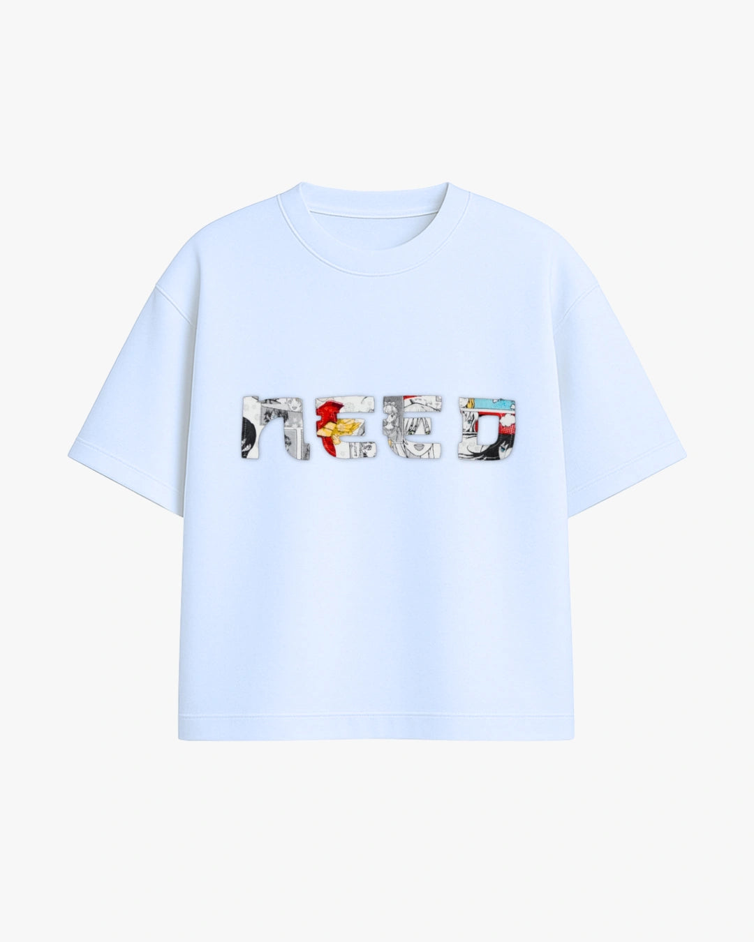 Davanti, il nome Need ricamato come un sigillo di appartenenza.