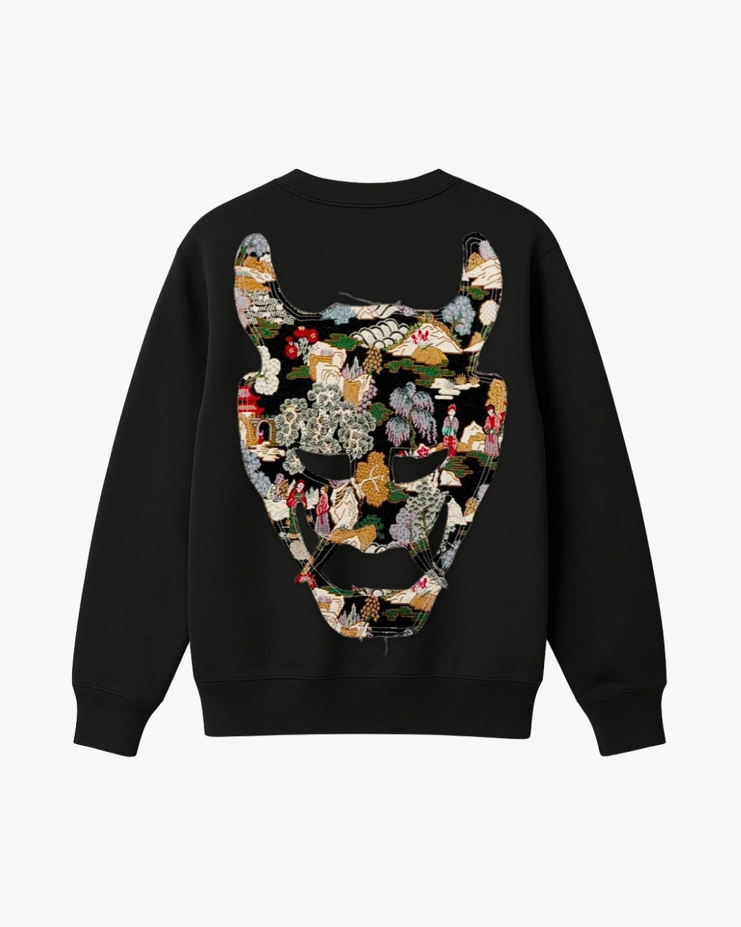 Felpa girocollo dalla vestibilità regolare che unisce tradizione e modernità grazie a un pregiato tessuto in stile orientale. Il nome del brand, ricamato sul fronte, dona un tocco distintivo e minimalista, mentre sul retro spicca un demone giapponese ricamato, per un carattere audace e unico. Un capo perfetto per chi desidera uno stile raffinato ed elegante con un tocco esotico.