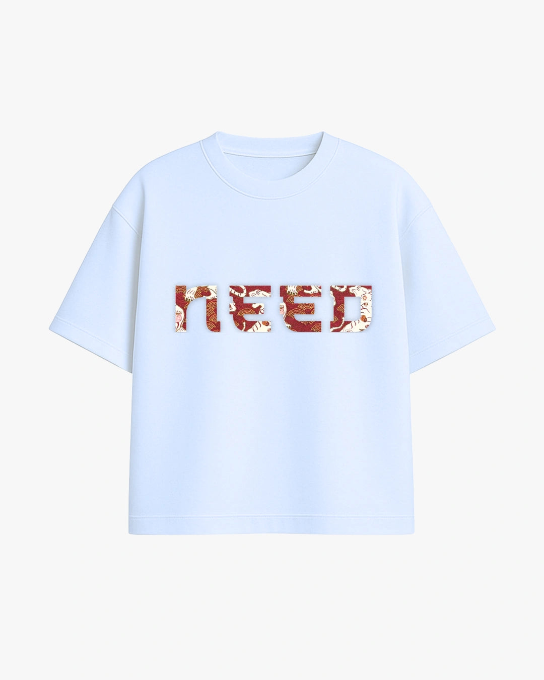 Davanti, il nome Need ricamato come un sigillo di appartenenza.
