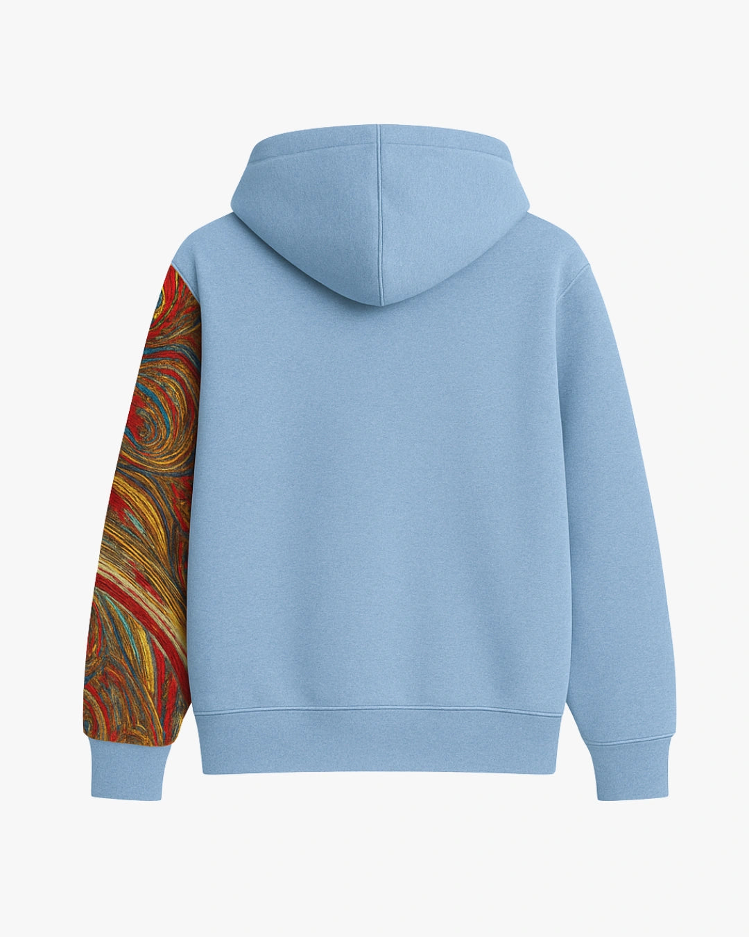 Scopri la felpa con cappuccio e zip che unisce comfort assoluto e stile inconfondibile. La tonalità skyblue dona freschezza e luminosità, mentre la manica decorata con un raffinato motivo astratto multicolor aggiunge un tocco di creatività e carattere. Un capo versatile, perfetto per distinguerti con un look contemporaneo senza rinunciare a praticità e comodità. Ideale per ogni occasione, dal tempo libero all’uscita in città. Aggiungila ora al tuo guardaroba!